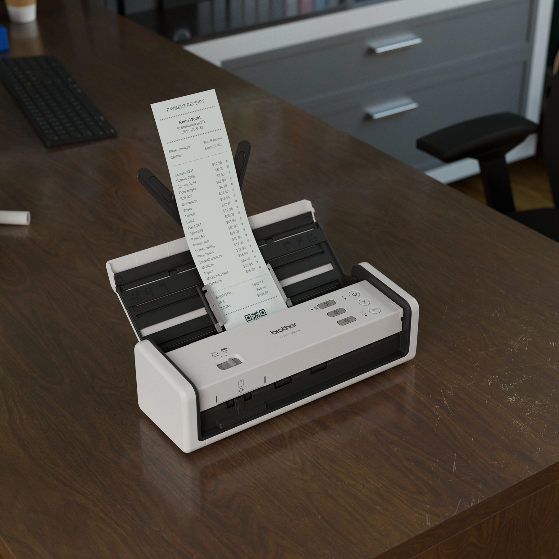 Whether you’re working from home, in the office, or in a shared workspace, our fully portable ADS-1350W scanner is easy to set up,