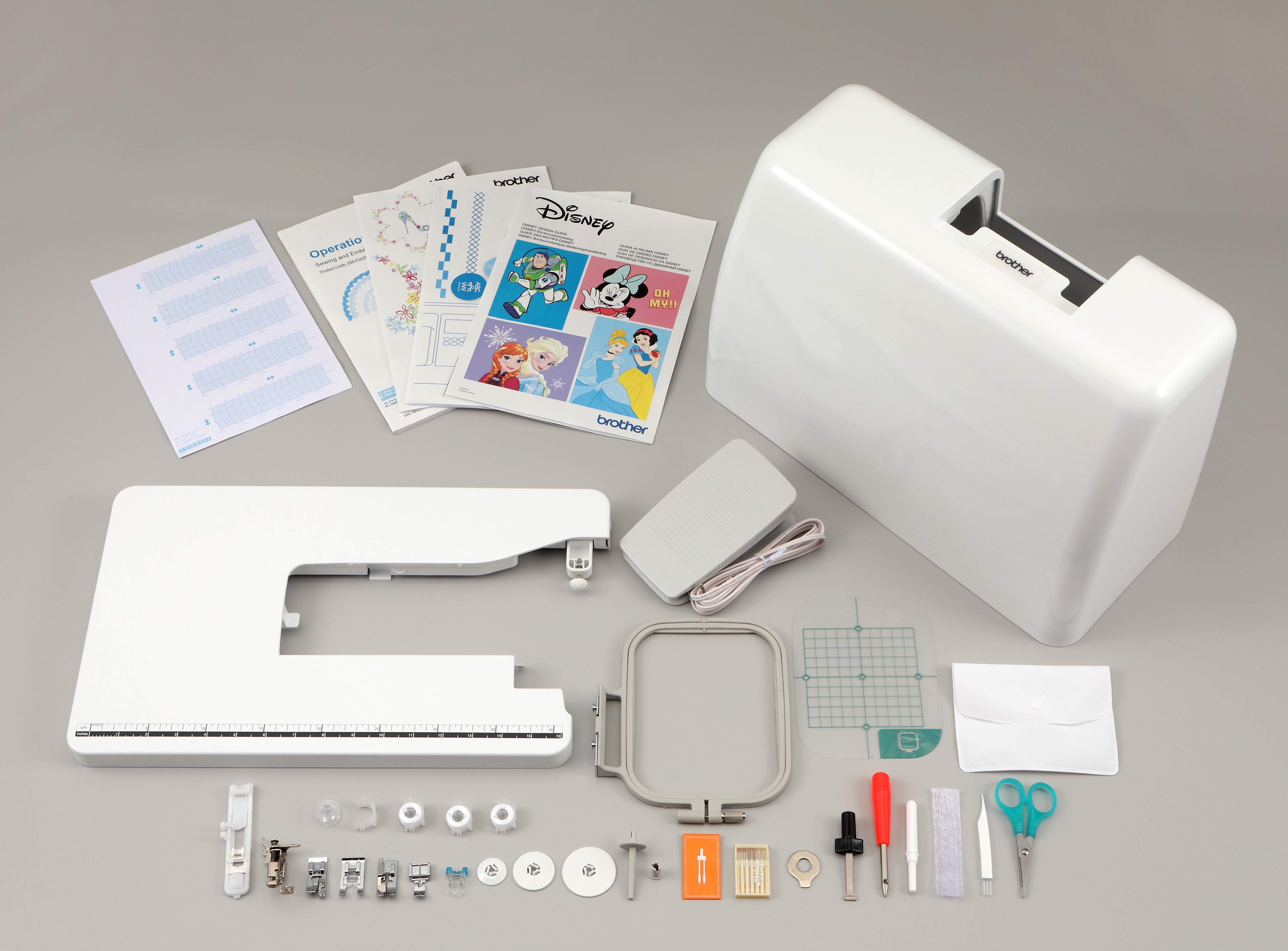 The Brother Innov-ís NS1850D is the sewing and embroidery machine with lots of character. Perfect for taking the first steps on your embroidery journey, or levelling up your skills, this portable machine has all the cutting-edge features you need for exploring your hobby. Optimize your embroidery with over 100 built-in embroidery designs and 11 embroidery fonts. Additional embroidery designs include colourful motif patterns, youthful appliqués, and alphabet and frame patterns as well. With 65 built-in Disney embroidery designs – from Pixar and Princesses to Pooh Bear and Mickey and Minnie Mouse, your next project may as well be Disney-inspired. Wireless LAN Capability lets you send files from your PC to your machine via the free downloadable software Design Database Transfer (no USB required), so you can send and then stitch! This unique quality allows for easy data management for all your designs. Create and save unique stitches for even more personalization with My Custom Stitch. With a 4"" x 4"" maximum embroidery area, and a 6.4"" x 4.0"" work area, you’ll have plenty of room for working on your projects. See your designs on the sharp 3.7"" LCD display, which allows for easy on-screen editing, including letter editing and combining designs. All your sewing needs are in the bag with 181 built-in sewing stitches, including 10 styles of one step auto-size buttonholes, and the advanced needle threading system. It comes with a hard case, a wide table, a foot controller, a selection of feet and more. New for Fall 2022, the Artspira Mobile App lets you download designs or make your own embroidery designs by drawing on your mobile device. Draw line-art inspired designs up to 5"" x 7"" and view your completed drawing on the Stitch Simulator so you can see how your design will look when stitched out. The Artspira mobile app also lets you share your creations on many social media platforms."