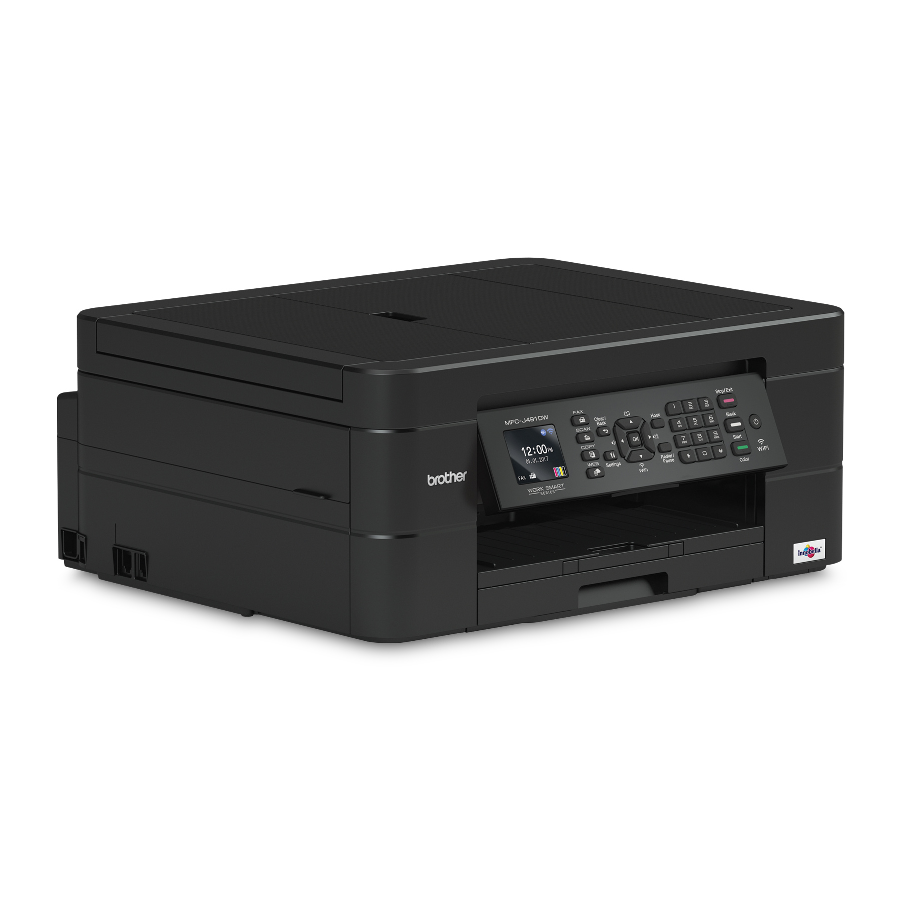 Abordable et facile à utiliser, le tout-en-un jet d'encre couleur MFC-J491DW de Brother permet l'impression sans fil à partir d'appareils mobiles et est équipé d'un bac à papier d'une capacité de 100 feuilles. Il est parfait pour la maison et le bureau à domicile. Voir la description complète du produit